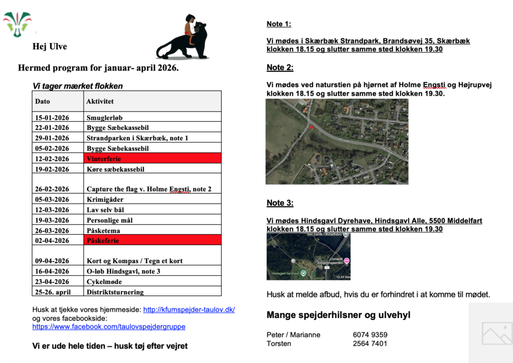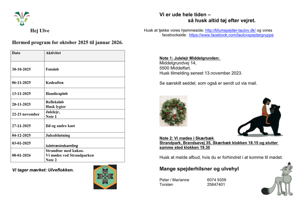 Ulveflokken holder møder torsdag kl. 18.15 – 19.30
